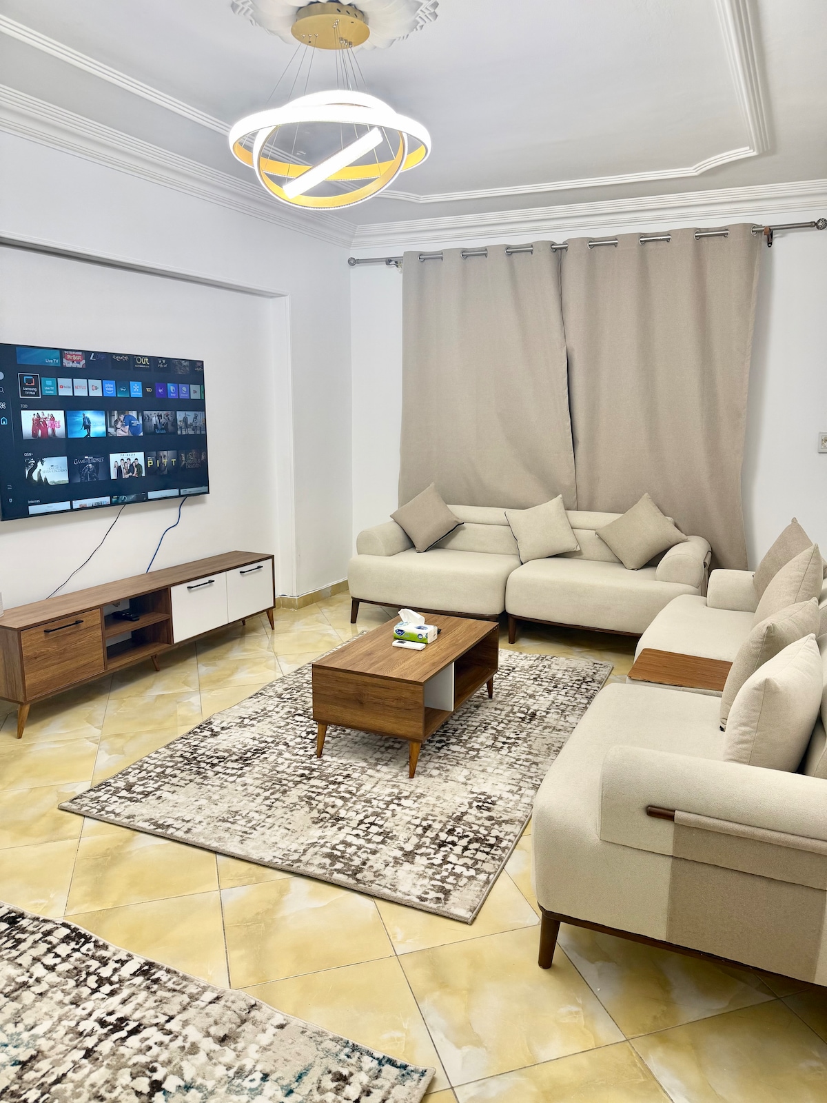 Welcome to your serene retreat in the bustling heart of Degla Maadi! Nestled in a prime location, this chic apartment offers a tranquil haven for families and travelers alike. Step into modern elegance with our stylishly furnished space, boasting two cozy bedrooms adorned with plush bedding for a restful night's sleep. The fully-equipped kitchen beckons culinary adventures, while the comfortable living area invites relaxation after a day of exploring Cairo's vibrant streets.