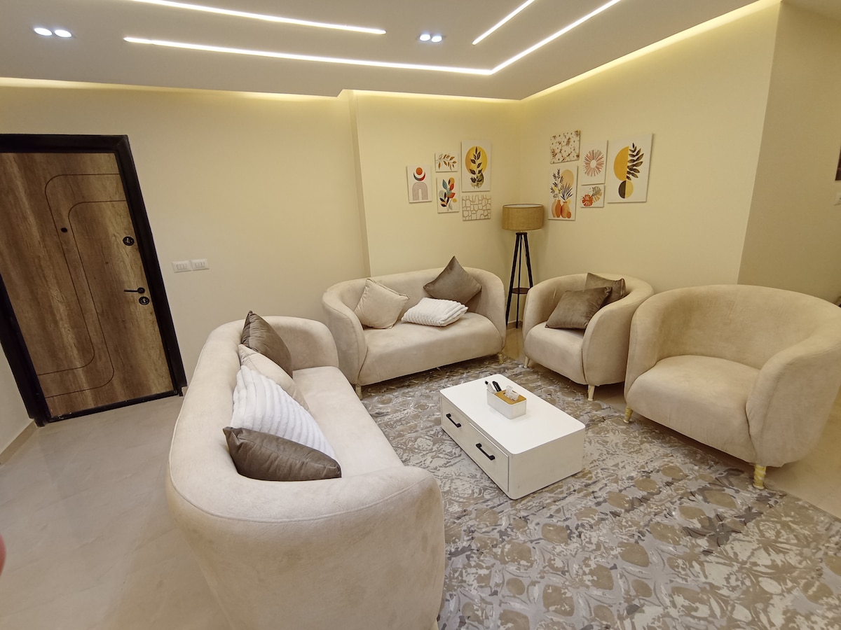 Welcome to our 3-bed, 3-bath, 220 sqm Maadi gem! Enjoy open views, a fully equipped kitchen, a 55" Smart TV, and lightning-fast Wi-Fi. Conveniently located near shops and restaurants, Carrefour and 50 Hub Mall are just 2 minutes away. Explore Maadi's charm and Cairo's attractions from this stylish and central retreat. Perfect for families or groups exploring Cairo's vibrant scene. No single male guests allowed. Ladies, Couples & Families only.