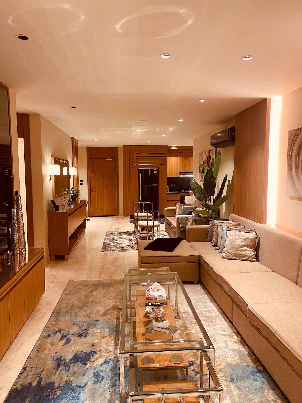 compeletly new furnished apartment with hight standars, hight quality and stylish furniture, brand-new applainces and air conditioners, my flat is located in a very centeral location like, 1 minute walkin to street 216, gourmet, 3 minutess walking distance to street 233 and all the hybermarkets ( carrefour, metro market, Saoudi Market ) also the flat has 2 balconies which is surrounding with trees from everywhere.