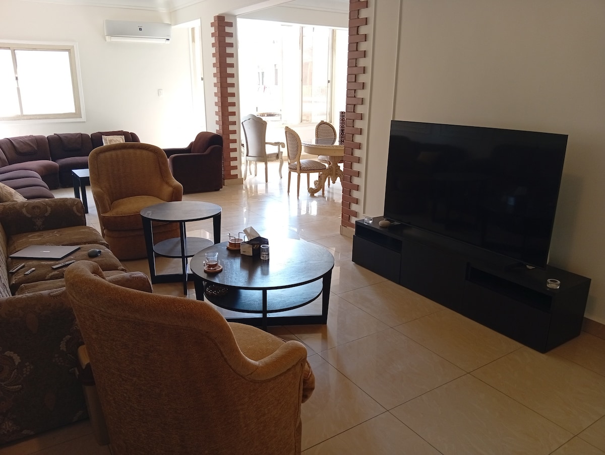 Weekly & Monthly DISCOUNTS are available. A SUNNY fully furnished Apartment. Rooms are newly furnished, air conditioned, well DESIGNED, with all amenities. Coffee shops, restaurants, supermarkets, and pharmacies are all nearby. With it's amazing location in the center of Cairo, its just 1 min to Ring road, 2 mins to Carrefour, and near many beautiful sights in Cairo. A HOTEL QUALITY with Home like Comfort offered with REASONABLE PRICE. Men & Women are only allowed together if married.