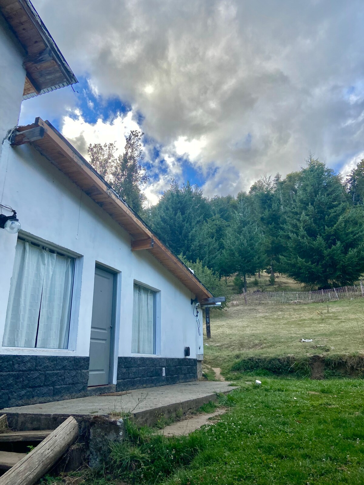 Relajate con tu familia en este tranquilo alojamiento en Lago Puelo, Casa para 5 personas equipada a full con fogón super chic a los pies de los Andes. A minutos del Lago Puelo y del Río Azul y a distancia a pie de las mejores Heladerias, Casas de té y Cervecerías de la Zona. INTERNET SATELITAL INCLUIDO.
