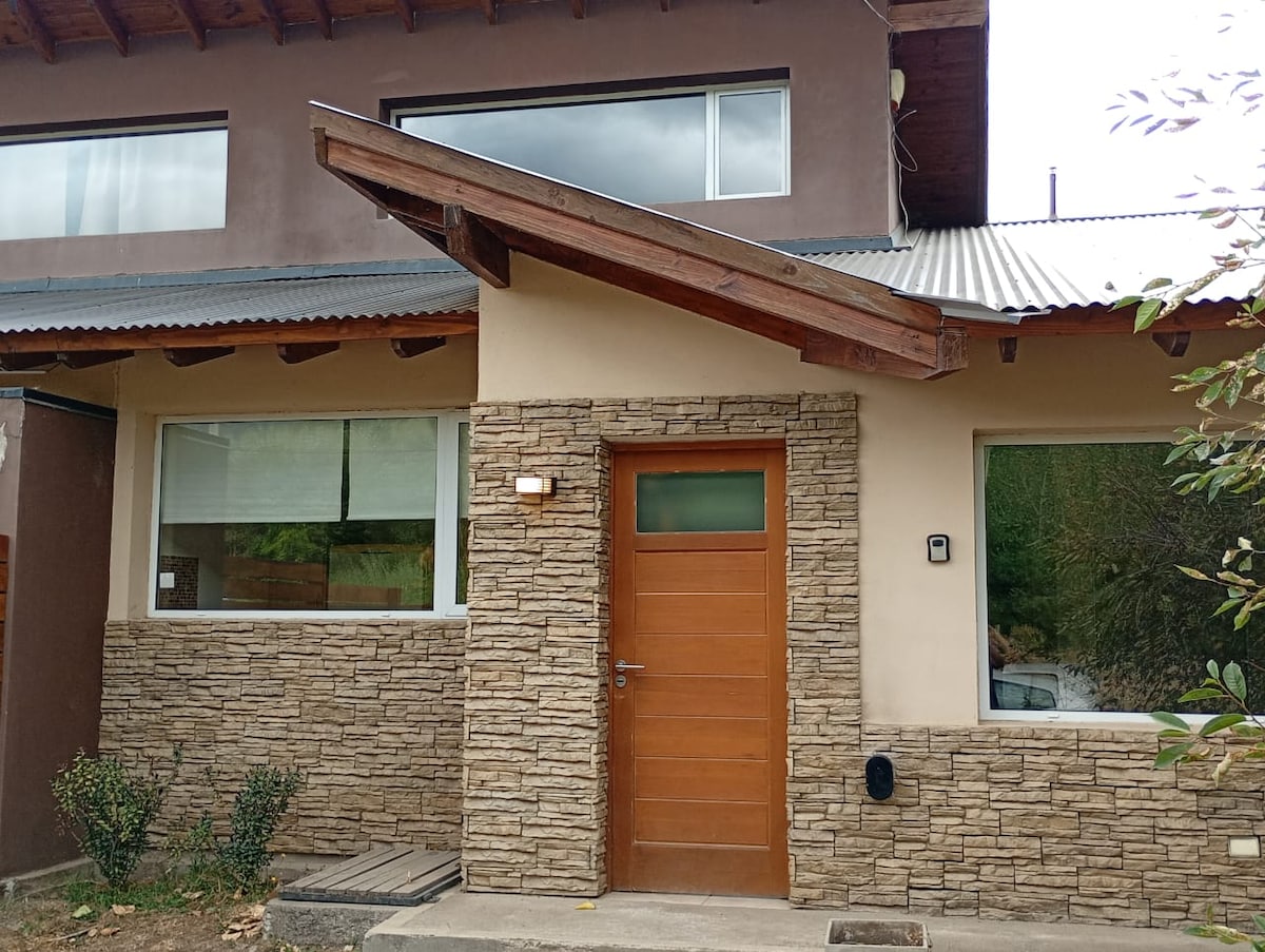 Casa de 70 m2 totalmente equipada, con jardín, parrilla y espacio dentro del predio para guardar vehículo. Ubicada a apenas 5 minutos de la centro. Se caracteriza por ser un lugar muy tranquilo con luminosas y amplias vistas al Cerro Piltriquitrón y precordillera. Muy modernas y con estilo propio.