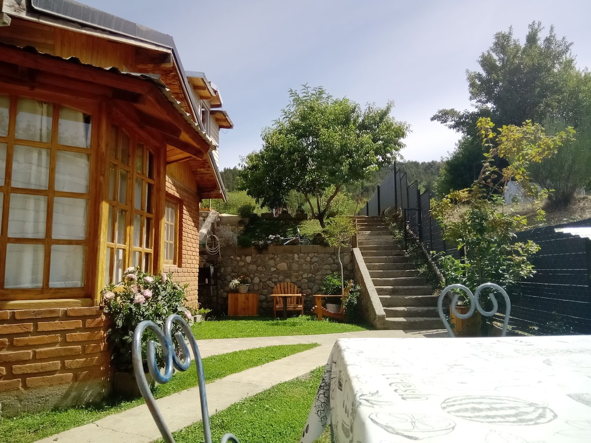 Full departament in tourist Villa. Ideal for couples. We are in the national rute n° 16, one km away from National Park Lago Puelo and one km from the center of Lago Puelo town. The apartement has a full landscape garden with beatifull view to the mountains that surround us. It has an equipped dinning kitchen, matrimonial room and private bathroom.