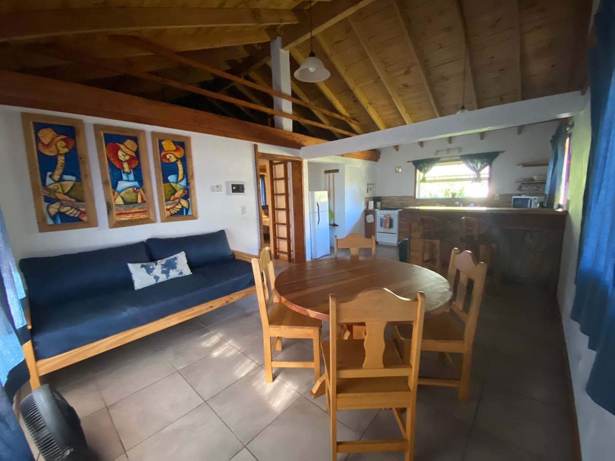 Nuestra "Cabaña para 3" es una casita hermosa equipada para dos o tres personas. Es un monoambiente muy amplio, esta comodamente equipado y amoblado para dos o tres personas. Sus ventanales abren una increíble vista hacia la cordillera y el entorno natural que la rodea te invita a desconectar de todo y descansar ,como así también a poder concentrarte y trabajar, dependiendo cual sea el motivo de tu viaje.
