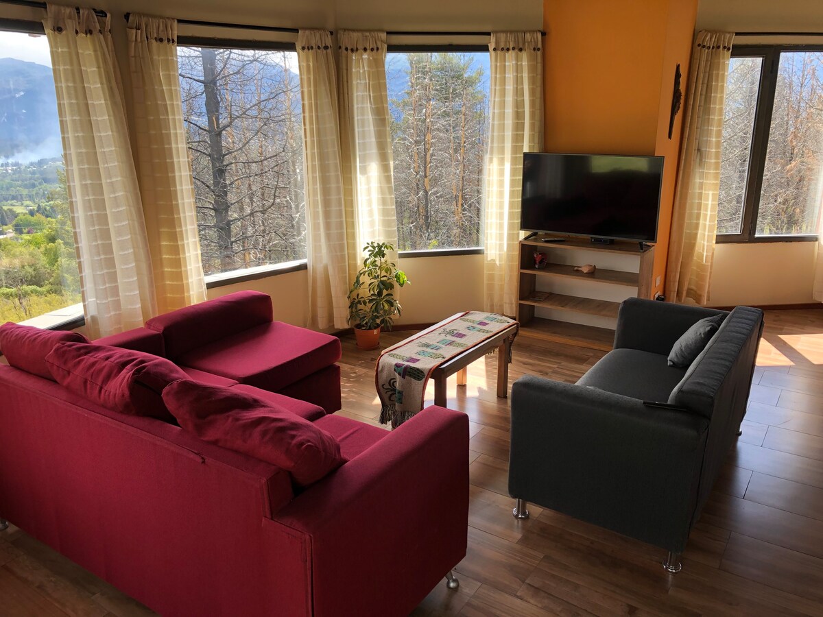 Este alojamiento único tiene mucho espacio para que disfrutes con tu familia o grupo de amigos. Disfruta de un rico asado, la piscina y el sonido de los pájaros con vista al monumental piltriquitron. Calor en verano y nieve en invierno, ideal para cualquier época del año.