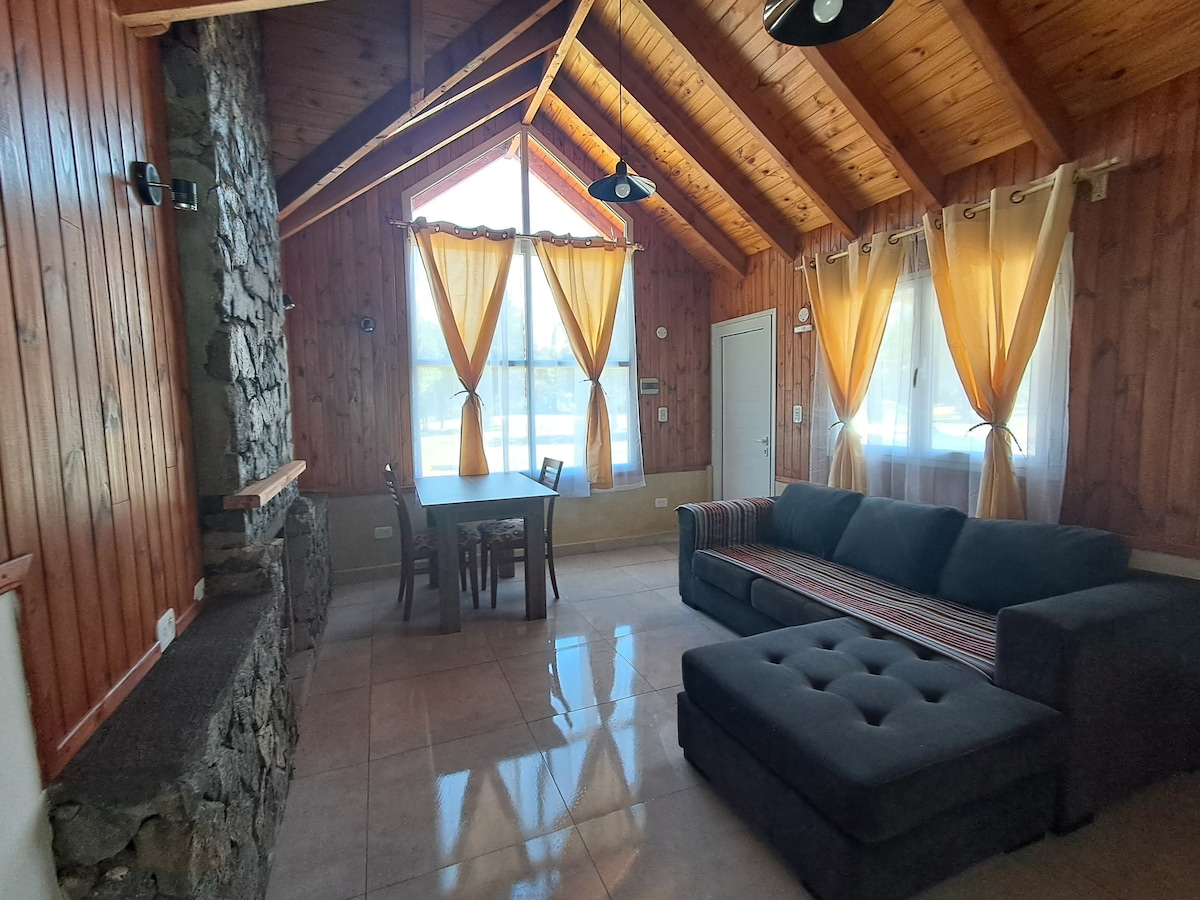 Encantadora cabaña de 70m2 completamente equipada. Cuenta con living-comedor, cocina y baño privado con ducha (89cm x 60cm de fondo). Además, una habitación con cama matrimonial queen size, placard y calefactor a gas natural. El resto de la Cabaña posee calefacción central por aire (hace un poco de ruido). En el living tiene una cama individual. Cuenta con estacionamiento techado. No dispone de parrilla ni fogonero.