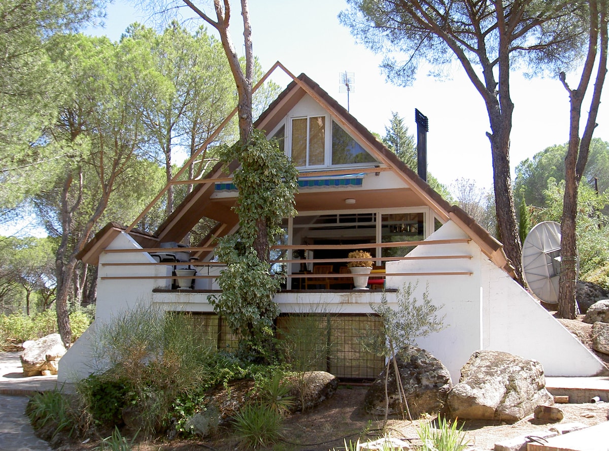 Entorno privilegiado, rodeado de pinares junto a pantano, localizado entre tres de las ciudades más representativas de España: Toledo, Ávila y Madrid. Casa de diseño muy interesante en forma de A, con mucha luz, en plena naturaleza, con vistas a lago y montañas. Jardín privado de 1500 m2 con piscina particular. Terraza amueblada y con BBQ. A 7 km de San Martín de Valdeiglesias (donde se dispone de todo tipo de servicios). Posibilidad de realizar diversidad de actividades acuáticas.