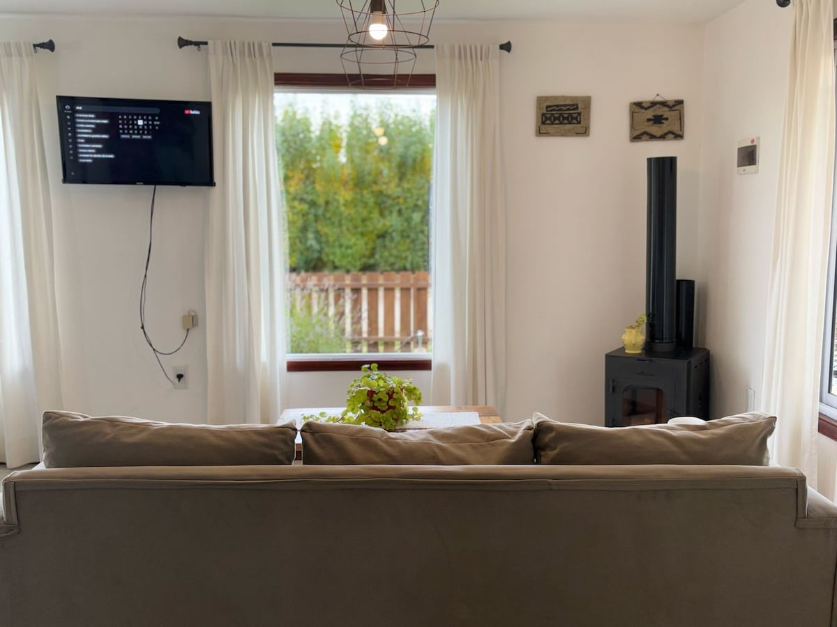 Relajate con toda la familia o amigos en esta tranquila, luminosa y cómoda cabaña. El espacio es ideal para descansar después de explorar los paisajes únicos de la región!! Te ofrece - Cocina equipada (heladera, horno, tostadora, vajilla, etc) -TV Smart - tres dormitorios - baño moderno con ducha - wifi - Calefaccion.
