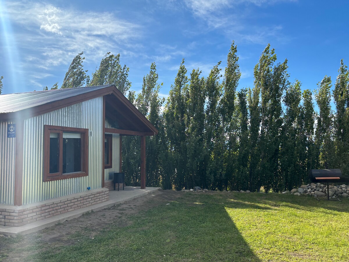 En La Comarca Azul Ofrecemos una casa estilo cabaña en la zona centro de la ciudad, en el barrio zona de chacras a pocas cuadras de autoservicio, bares y restaurantes. nuestras casas estan equipadas pensadas en la comodidad del viajero, la.belleza de su sencillez resguardada con álamos forman un espacio unico acompañda de una tranquilidad inigualable.