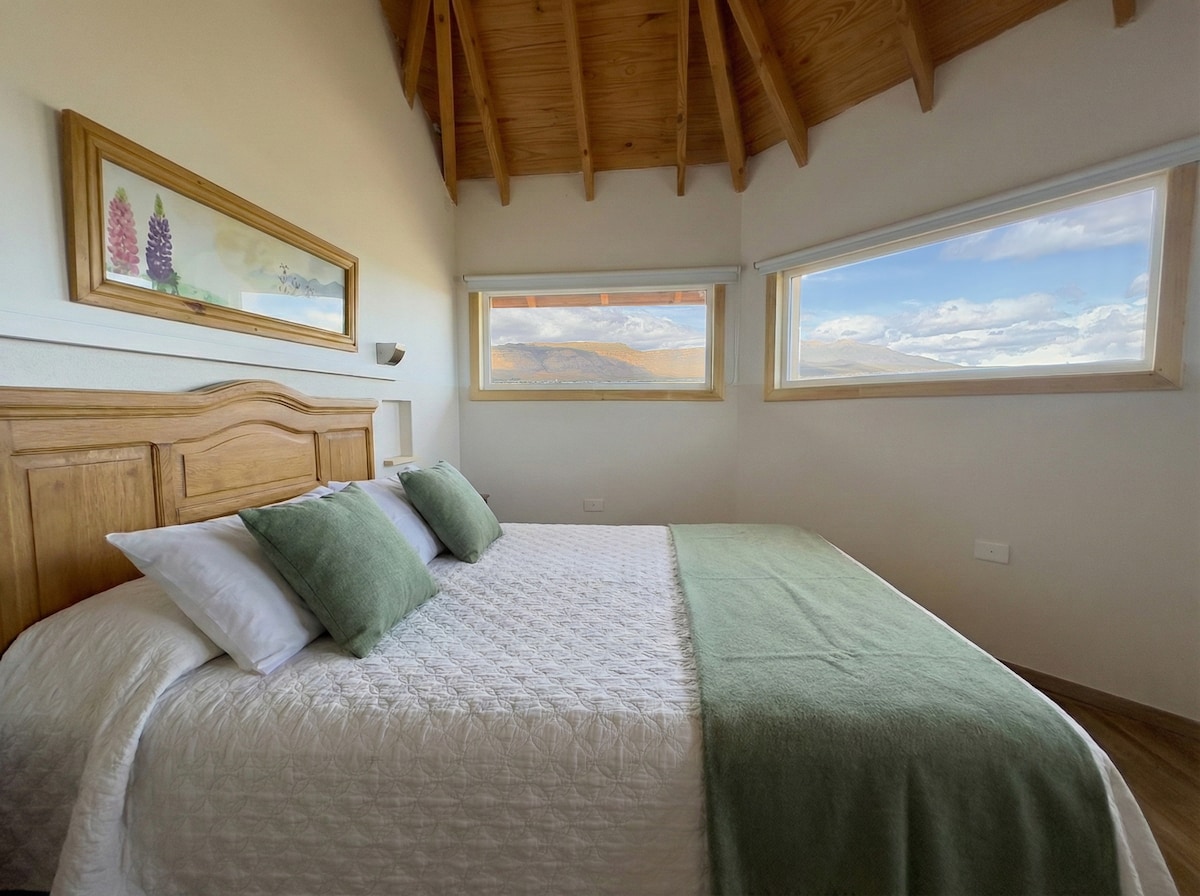 Casa de lujo con estilo vintage en El Calafate, con vistas únicas al Lago Argentino, la ciudad y la precordillera. Cuenta con 3 habitaciones luminosas, 2 baños completos, cocina totalmente equipada, amplio living con hogar a leña y un elegante comedor. Equipada con WiFi, Smart TV, calefacción y estacionamiento privado. Ideal para familias o grupos de hasta 6 personas que buscan comodidad, amplitud y una experiencia inolvidable en la Patagonia.