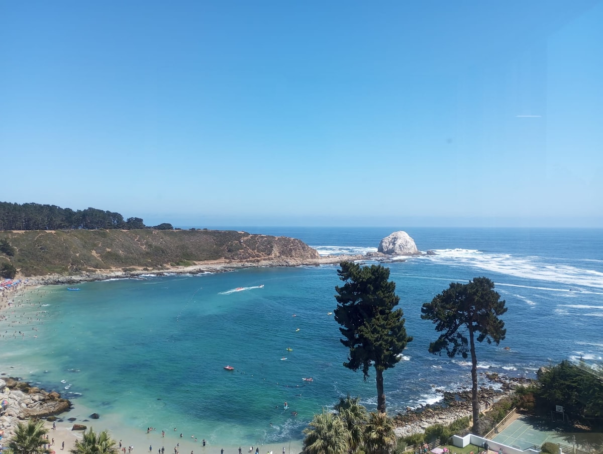 Hermoso departamento con una maravillosa vista al mar, con dos habitaciones, dos baños, cocina americana equipada. Cuenta con WIFI, las habitaciones y living con televisor y TV cable. Amplia terraza con impresionante vista al mar. Acceso directo a la playa y al lado de un bosque de pinos. Además hay un minimarket muy cerca. La tarifa no incluye sábanas ni toallas. Puedes traer las tuyas o, si te es más cómodo, puedes consultar por nuestro servicio de arriendo para la duración de tu estadía.