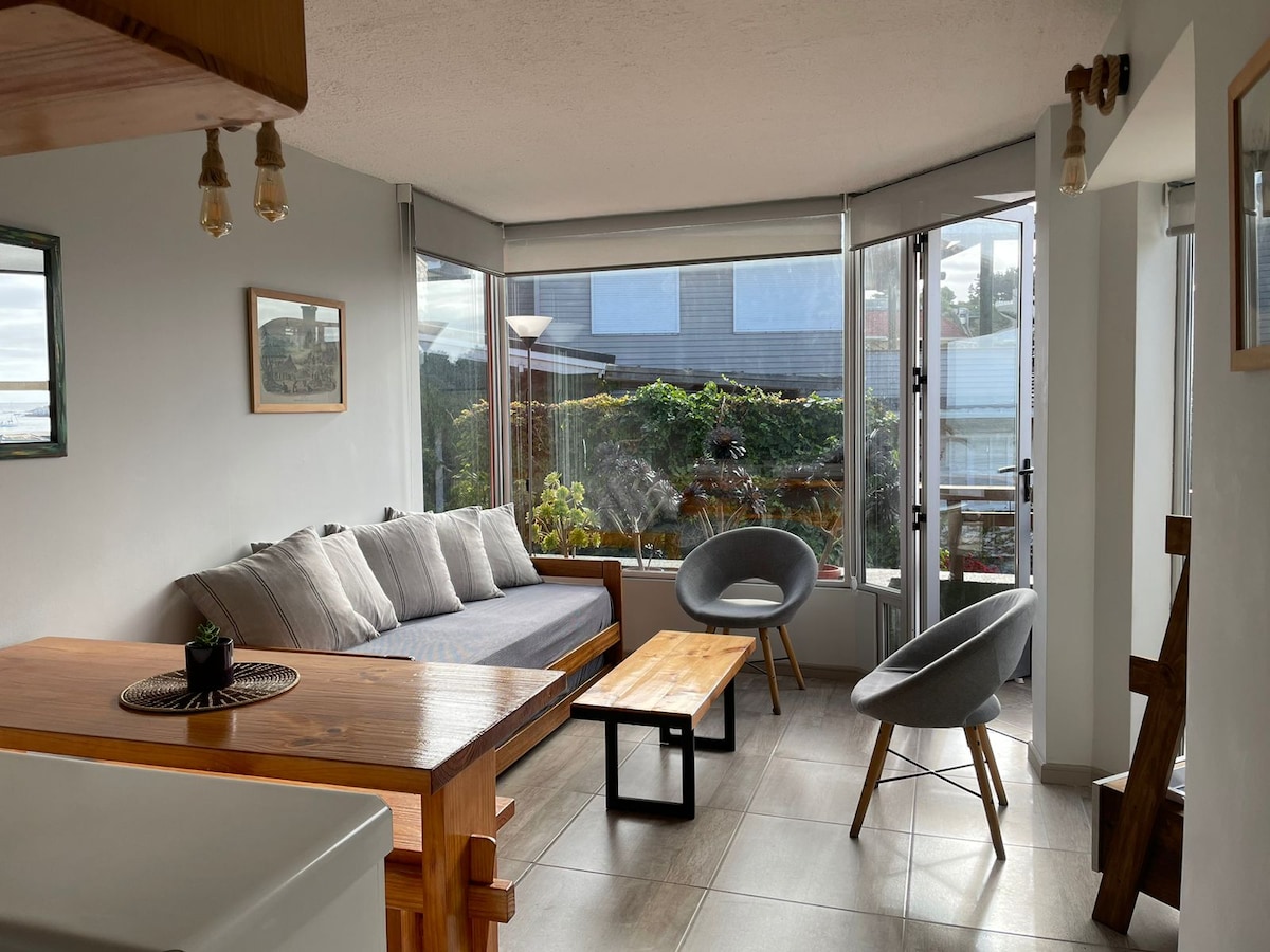 Hermoso loft, casa de piedra a orillas del mar. Ambiente familiar, conexión única al mar, aire fresco y el sonido de las olas. Tendrás acceso independiente, además de cocina y baño equipados para que disfrutes tú estadía. Cama europea de 2 plazas, sabanas incluidas. Chimenea y espacio de living-escritorio. Todos los recintos tienen vista al mar. Gran terraza con vista inigualable al mar con parrilla, único espacio compartido con los dueños.