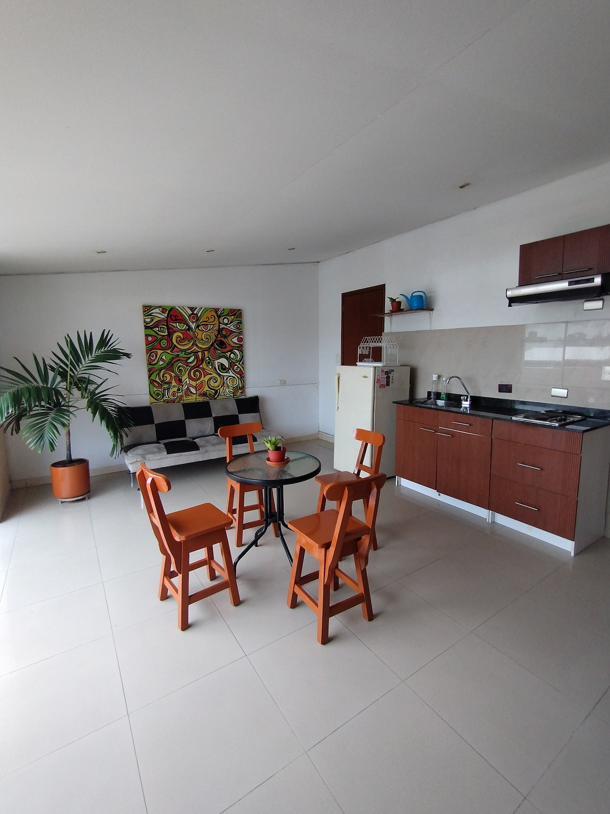 moderno y cómodo apartaestudio de dos ambientes ubicado en el exclusivo barrio El Ingenio. Ofrece entrada con cerradura digital, internet de 700 Mbps, sala con comedor tipo barra, cocina equipada (airfryer, microondas, cafetera), y habitación con cama doble, aire acondicionado, Smart TV de 65” y Alexa. El edificio cuenta con seguridad 24/7, parqueadero, zona de lavandería y terraza. Además, incluye membresía gratuita en un gimnasio a solo una cuadra.