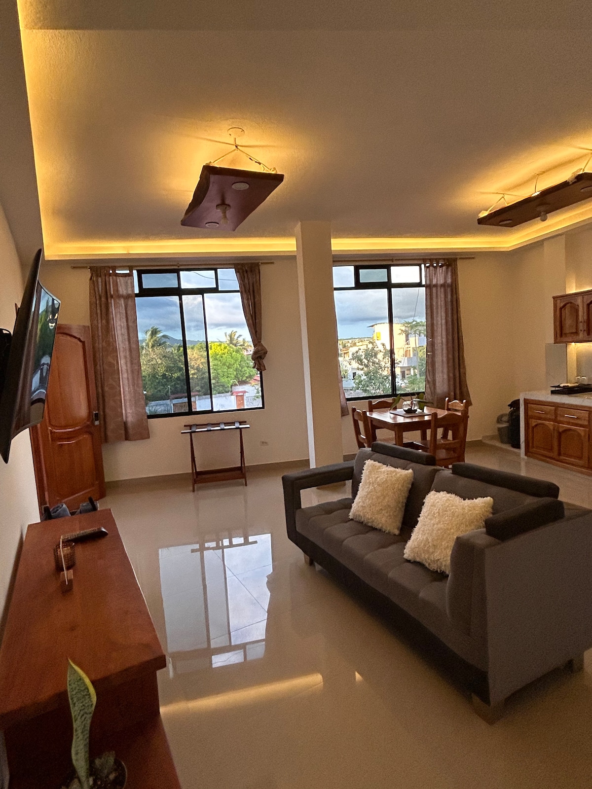 This stylish suite on Santa Cruz Galápagos offers stunning views and modern amenities, including A/C high-speed internet perfect for remote work, social media, or video streaming. Our private suite features a fully equipped kitchen, comfortable living room, dining area, bathroom, and a bedroom with cozy beds. Puerto Ayora is a peaceful town, and our location is ideal just a short walk to stores, markets, restaurants, and tourist attractions, making it the perfect base for exploring the island.