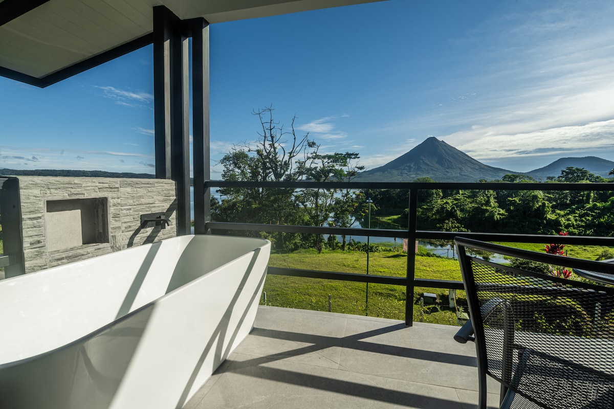 Un hospedaje para escapar de la rutina y conectar con la naturaleza, tiene un diseño moderno con una cálida decoración, rodeado de naturaleza donde podrás observar muchas aves, una linda vista al volcán, balcón, terraza, una refrescante piscina y jacuzzi privado. Un lugar ideal para parejas, amigos o para que puedas teletrabajar tranquilamente. Ubicados estratégicamente cerca de todas las actividades principales y a tan solo 2.5 km del centro de La Fortuna y a 1 km de La catarata La Fortuna.