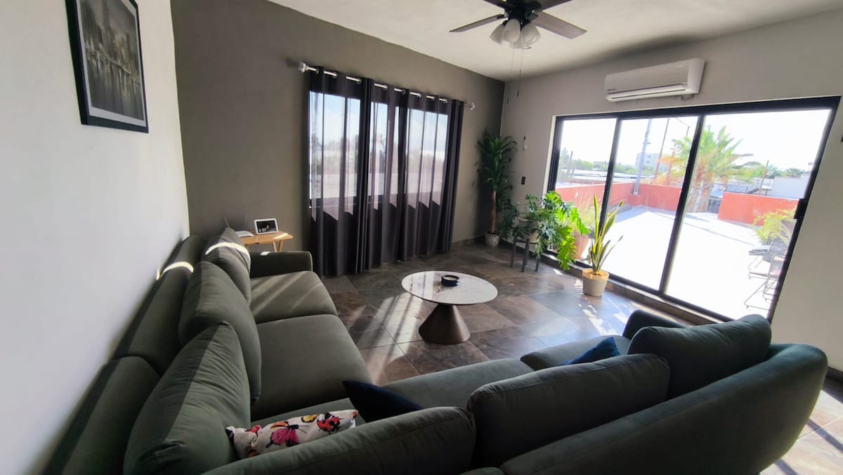 Baja California Sur: Descansa en tus vacaciones en la comodidad de nuestro nuevo, espacioso y elegante alojamiento. El condo esta' ubicado cerca del famoso Malecón de la Paz y de la Marina de Cortez. Todas las personas, niños y adultos, son bienvenidas. La ubicación muy céntrica te permite llegar al centro histórico de la ciudad con un paseo tranquilo y disfrutar los mejores restaurantes y cervecerías que se encuentran en sus calles típicas.