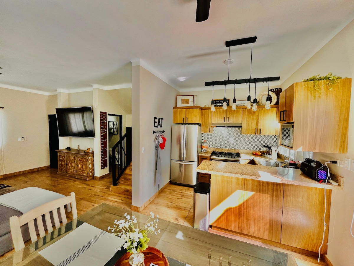 1 block from the malecon (board walk). Contemporary home on a historic street. Close to fine dining & popular watering holes. Open floor plan, 2 bedroom, 2.5 bath, 1 car garage, gourmet kitchen, W/D , pool, patio & grill. 1 min. walk to malecon. 5 min. walk to grocerie store & coffe shop Casa Contemporánea ubicada a una calle del malecón. cerca de restaurantes y bares. 2 recamaras, 2.5 baños, garage para 1 auto, lavadora y secadora, alberca y asador. 1 min del malecón y a 5 min del mercado.