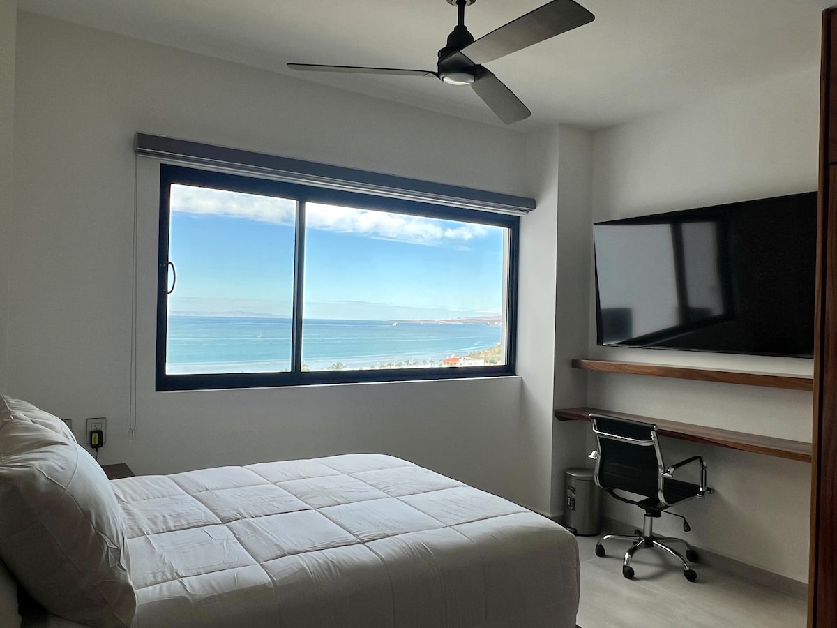 Studio Unit #2 - 'Casa Royce' is Beach front once in a lifetime experience 25 min away from La Paz Malecon. Located at Maravia Country Club Estates near Tecolote Beach area with Panoramic view of famous "Isla Espirito Santo" and Sea of Cortez. Car rental highly recommended. You are 1 min drive to the Beach, 5 min driving to TOP 10 Beaches in Mexico "Playa Balandra". Off-Grid Property with Starlink Wifi, Private RoofTop with a refillable BATHTUB with jets,Mini Golf. Gated community 24/7 Security.