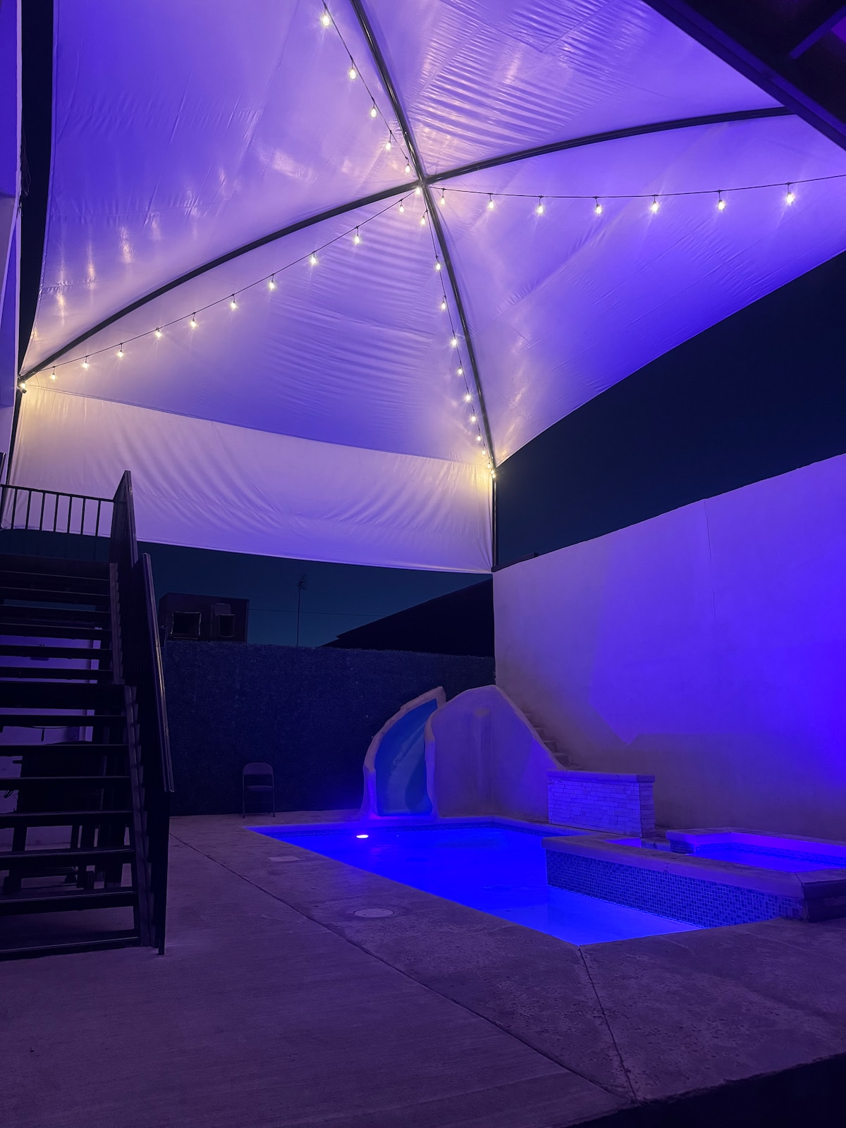 带泳池和滑梯的美丽大房子