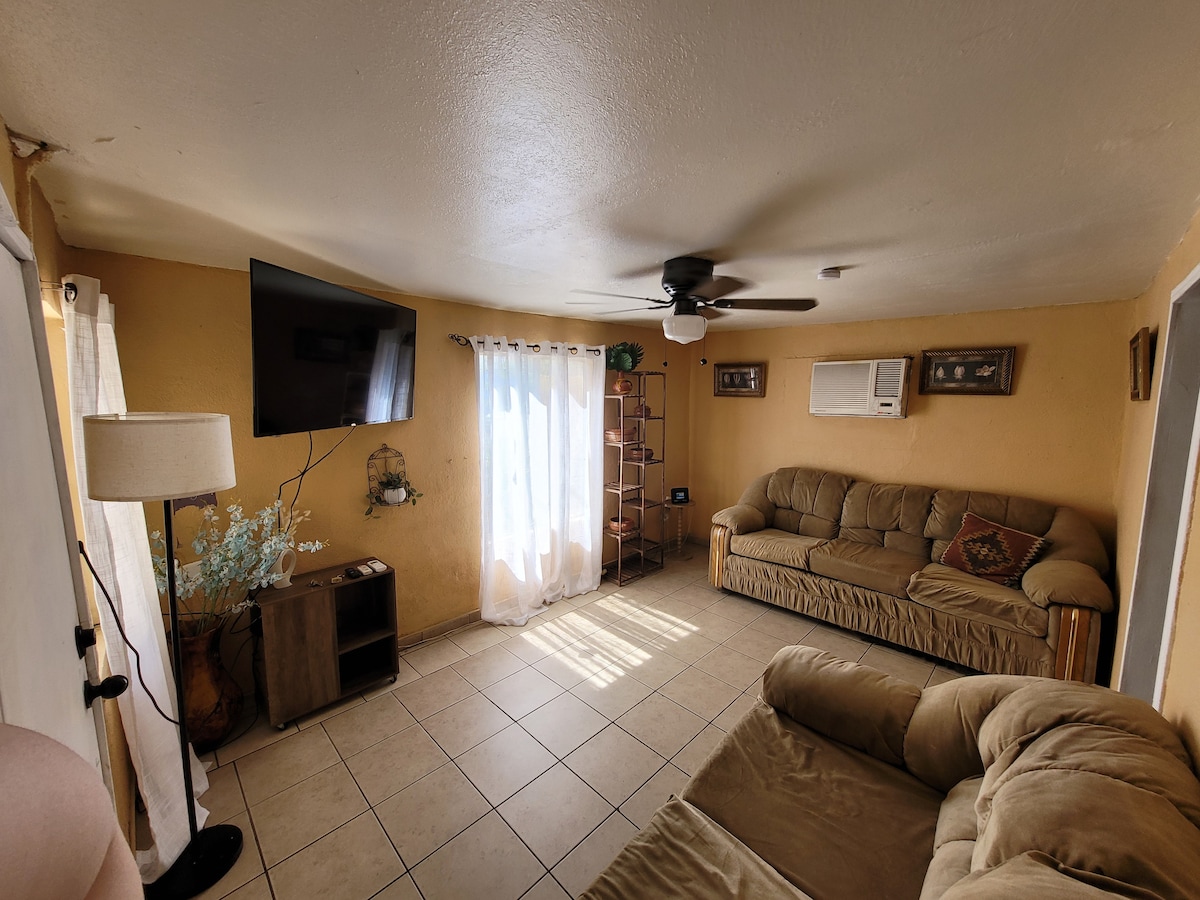 NO FIESTAS NI REUNIONES :) Casa ideal para viajes de trabajo o incluso vacaciones familiares, buscamos brindarte la mayor comodidad para ti y tu familia o acompañantes. La casa es muy segura y la ubicación es céntrica, a pie de las principales vias de la ciudad. a tan solo 10 min. de garita internacional a USA , 9min de palacio de gobierno en centro civico y 30 min del aeropuerto . la casa cuenta con dos habitaciones, cocina, sala, comedor, un baño, patio enfrente y estacionamiento propio.