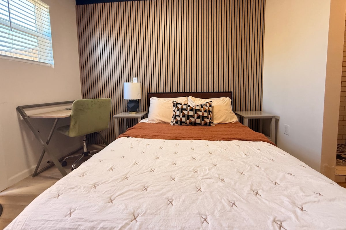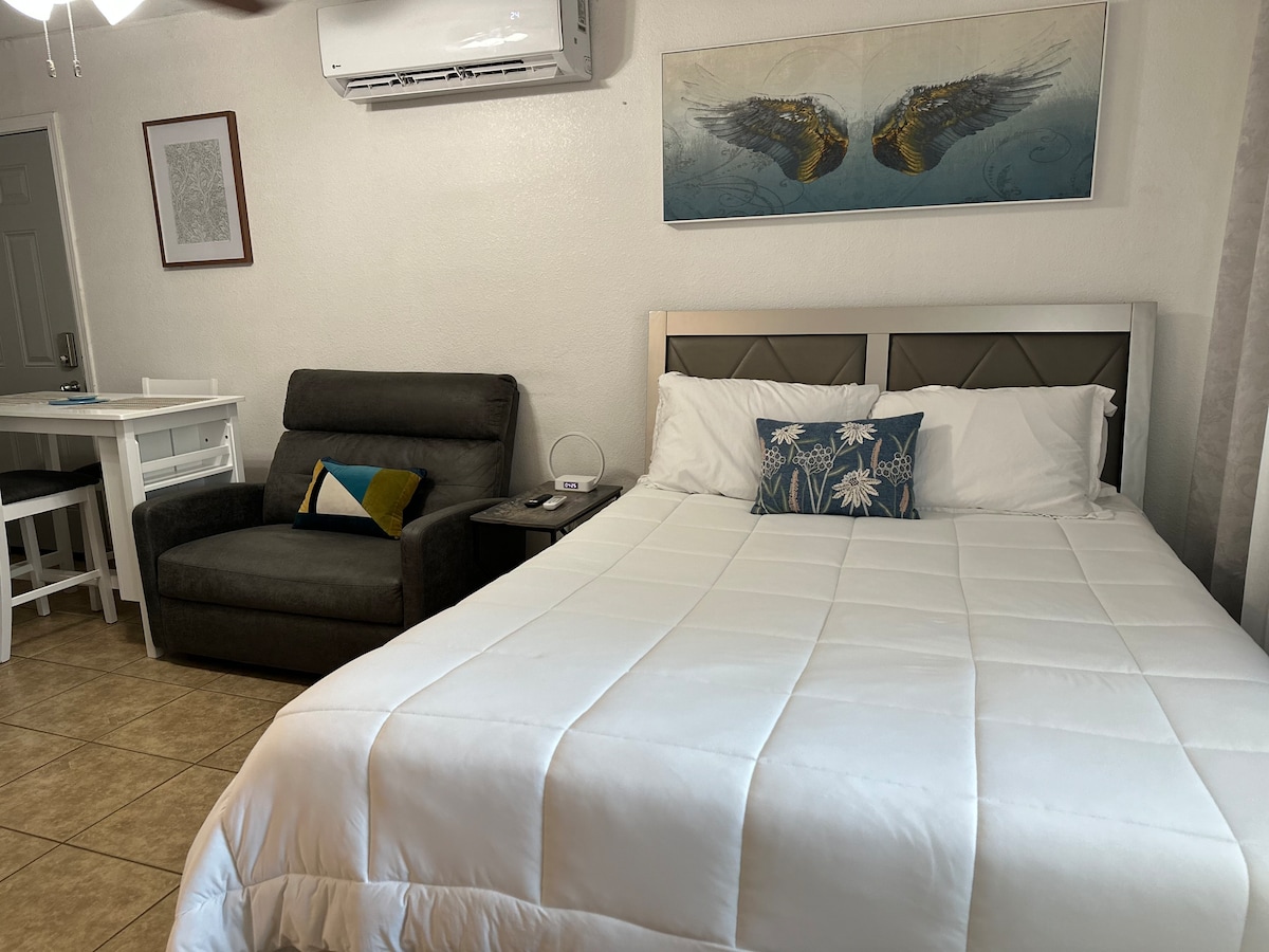 Welcome home! New, peaceful, private studio in great location. Perfect for working professionals or weekend stay. Get comfy and feel at home here! Your desert escape comes with all the comforts of a spacious studio, a plush queen-size bed, smart TV, well equipped kitchen and bathroom for your everyday use. Two people maximum; no smoking allowed.