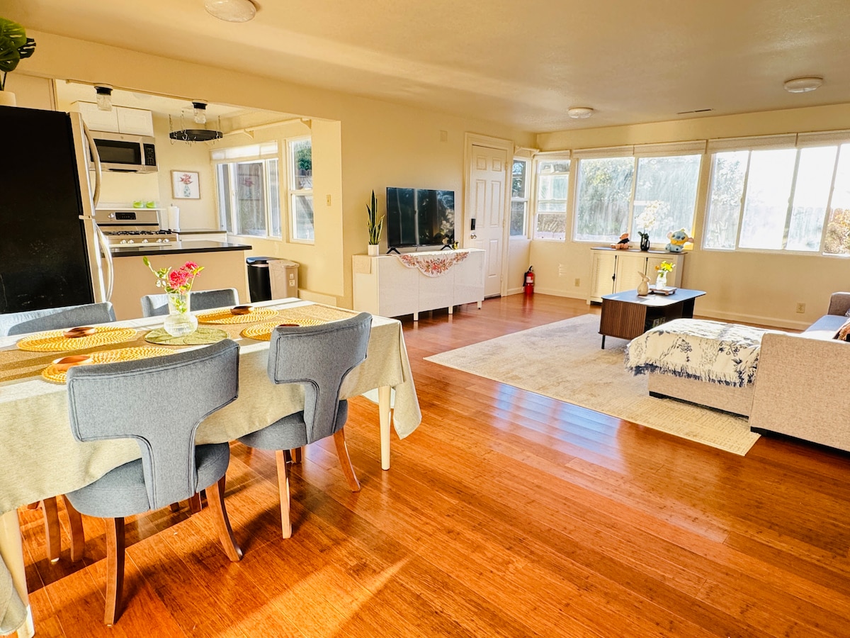 875 square feet, 2 bedrooms and 1 bathroom house, newly remodeled in charming neighborhood. 75“ smart TV with Peacock streaming. Heater only (AC is not common in neighborhood), wifi internet.Full kitchen, including microwave & dishwasher. Washer and dryer are located in detached garage. Guests own driveway. Very walkable to organic grocery stores, Japanese Asian market, and many local restaurants. 24 hour fitness is just across street.