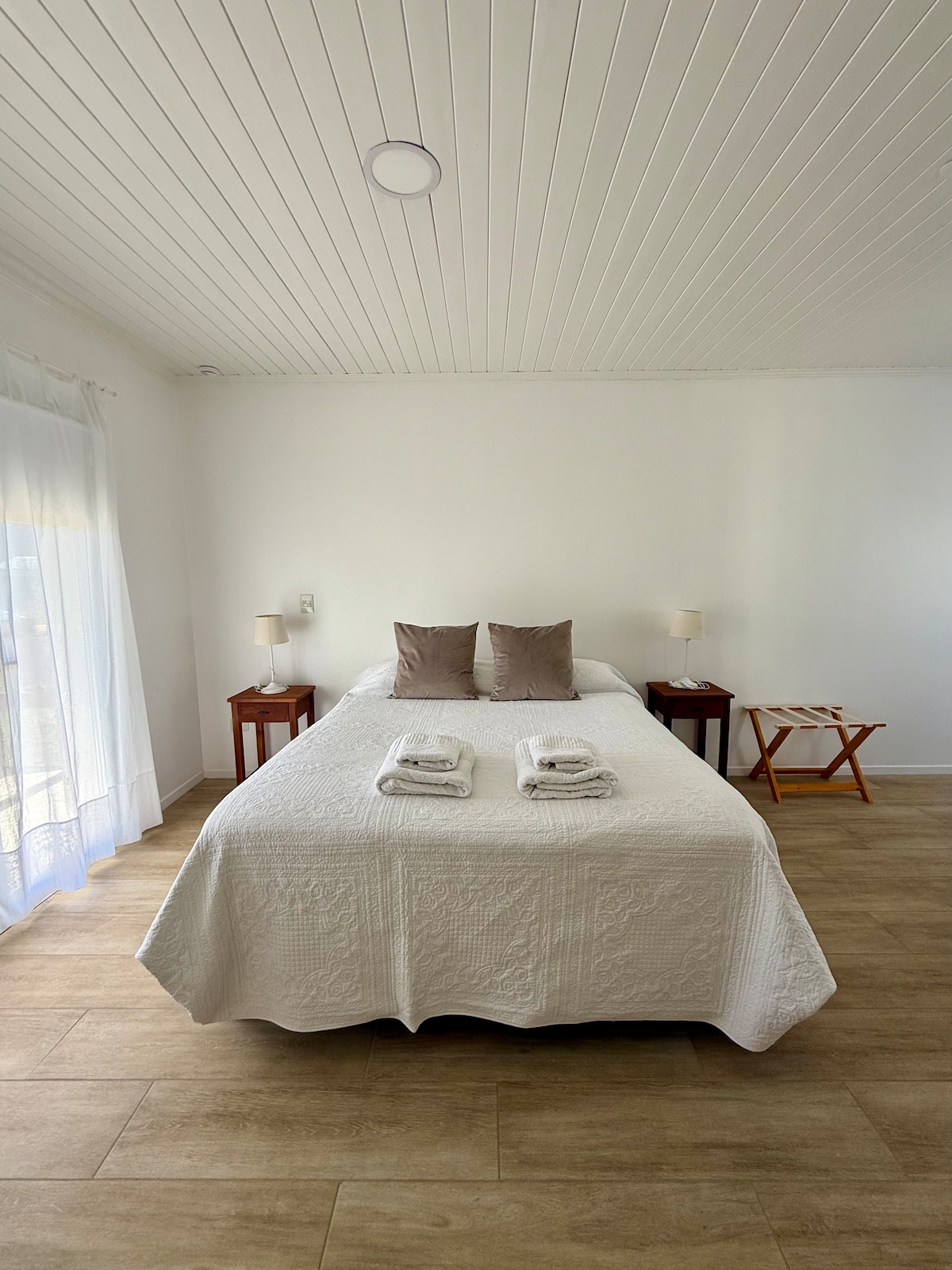 Vivienda Unifamiliar apta para 4 personas. Consta de un integrado cocina, comedor y living. Completamente equipada con utensilios y vajilla de calidad. Cuenta con un Dormitorio matrimonial y un dormitorio doble twin. El sillón se convierte en dos cómodas camas separadas . Se proporcionan toallas y ropa de cama. El baño posee ducha y bañera. Patio parquizado con acceso vehicular. Parrilla y/o barbacoa. Sistema de iluminación externa nocturna. Contamos con Smart TV y WIFi.