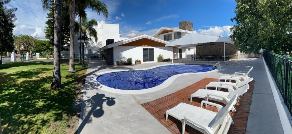 La casa tiene una amplia alberca, recién remodelada siempre caliente, dentro de un fracc. con campo de golf, la casa es de 750 mts muy cómoda con mucha luz y áreas verdes, un ambiente tranquilo lleno de naturaleza, ideal para el descanso. A una calle dentro del frac. hay oxxo, restaurantes, cafeteria, panadería. Ideal para dar un paseo caminando o en bicicleta recorriendo el campo de golf. Es un lugar con muchísima seguridad en donde podrán relajarse. Cocina recién remodelada.