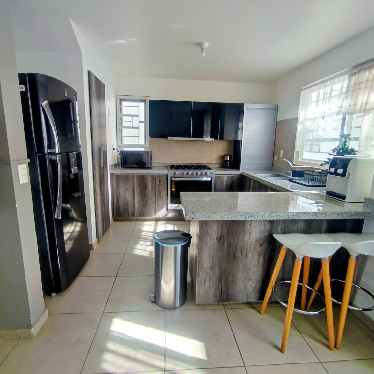 Beautiful house located south of Aguascalientes, an excellent place where you can enjoy tourist places and rest, either to travel for work, with family, or friends, 3 min from Sams Club and Aurrera, 10 min from the Fair from San Marcos, 15 min from the city center and close to the airport. It is in a private preserve with 24 hour security and common areas, games, gym and pool. It also has a smart lock.