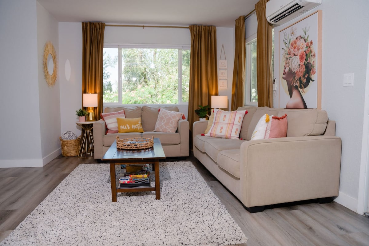 Wake up in the trees listening to the birds sing! Perched on top of a hill, you feel that you are in a forest in this newly remodeled 2 bedroom condo. The perfect place to stay on your way to Tahoe or to enjoy all the outdoor activities the area has to offer with your family. Placerville also offers a small town charm with local shops, wineries, farms, Apple Hill orchards, golf courses and tons of local hiking trails and outdoor adventures. Please note, there are stairs inside and outside the c