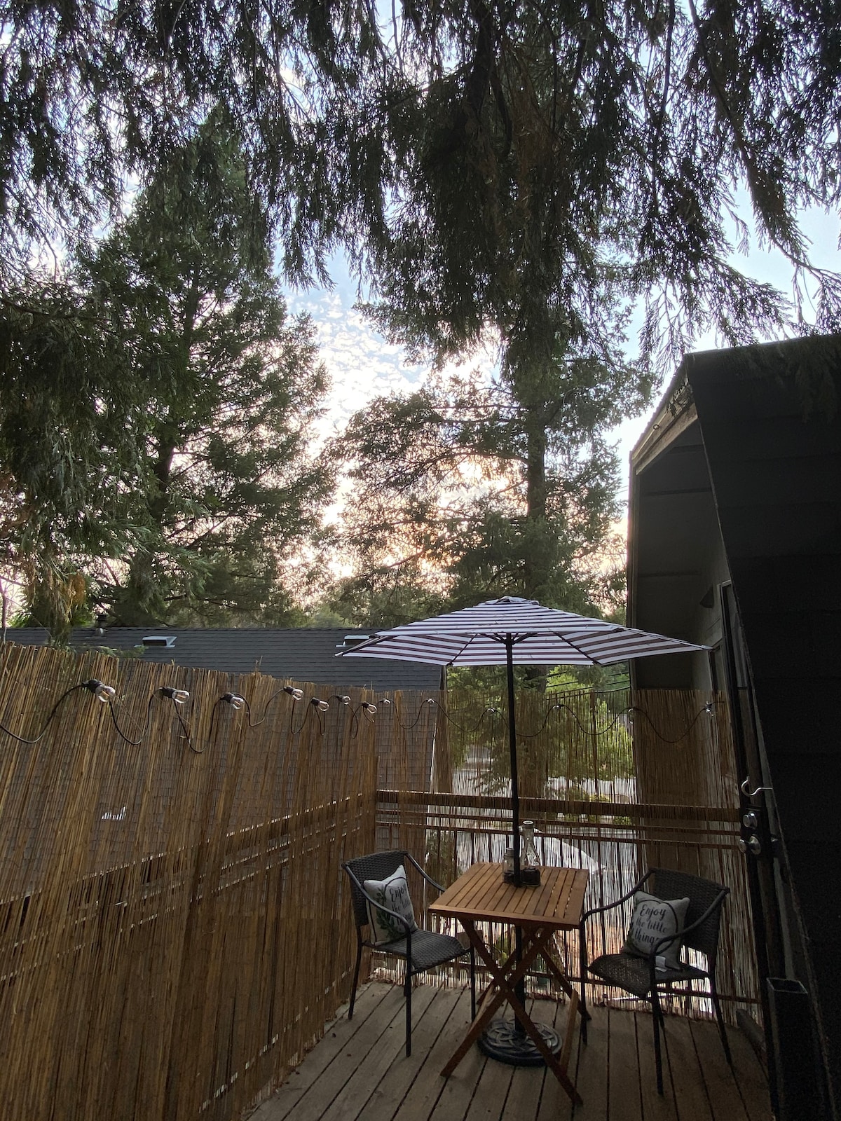 Walk to downtown Placerville! Beautiful guesthouse! We invite you to comfortable, clean accommodations. The guesthouse is perched among the trees with lots of windows and a nice layout. We provide coffee, selection of teas and sugar. Sit back and relax in pottery barn sofa and chair. Brand new Vizio smart tv (internet/wifi provided, there is NO regular tv cable). Cotton sheets and down/feather comforters (winter). Full kitchen! Come enjoy the beauty in the heart of Placerville.