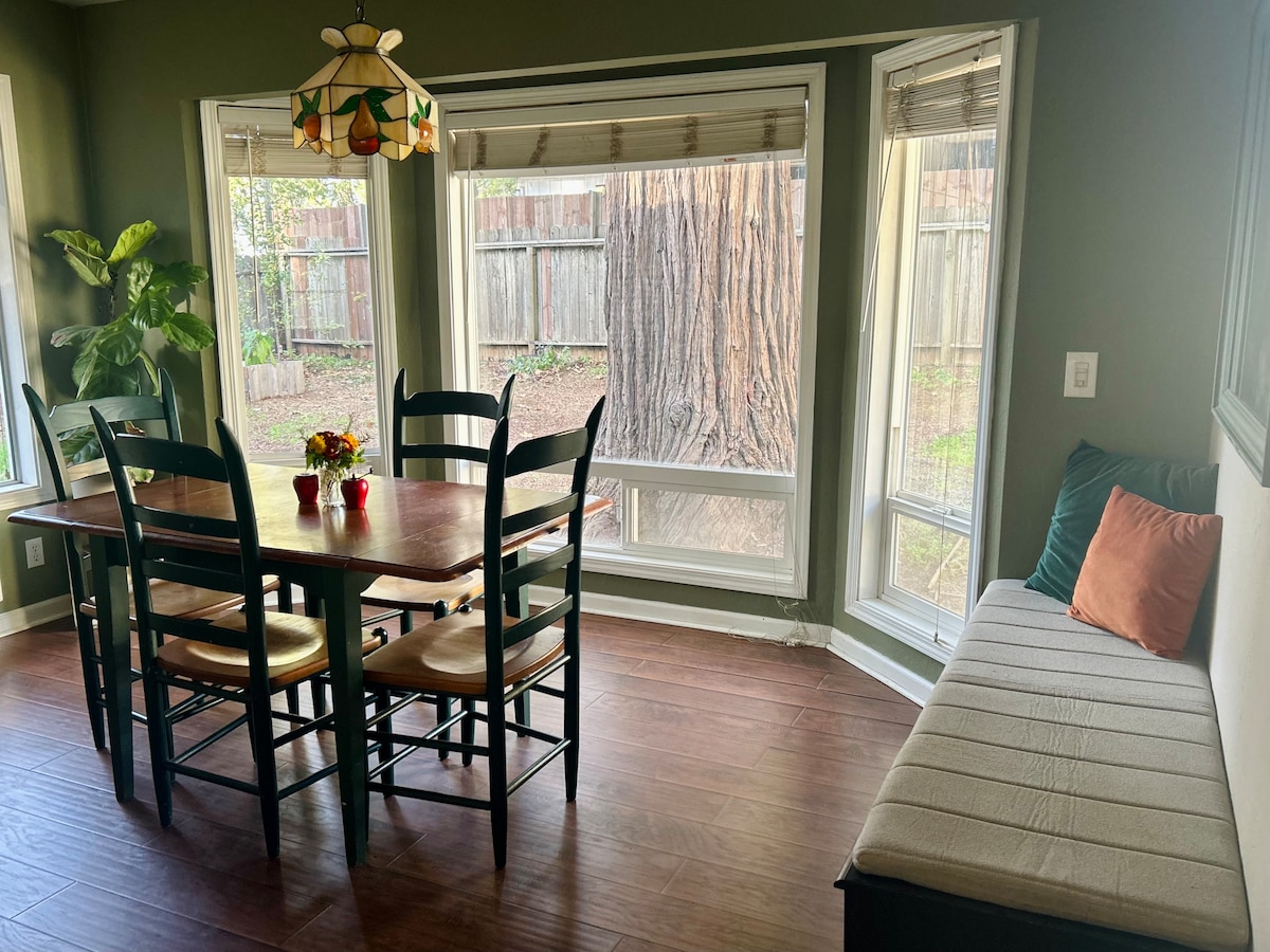 A Mountain Rose is a cozy, 2-bdrm home in the magnificent pines & cedars of Pollock Pines in the Sierra Mountains. Trees are bountiful & their smells are relaxing & refreshing! Our little home is a great place for a romantic getaway, families, or friends. We are located 2 miles from Hwy 50 & about 50 miles from Sacramento or So. Lake Tahoe. It's a quick drive to Apple Hill & Placerville. EV drivers, with prior approval, use type2plug $30 charge. Pets MUST be pre-approved; extra $20/night/pet.