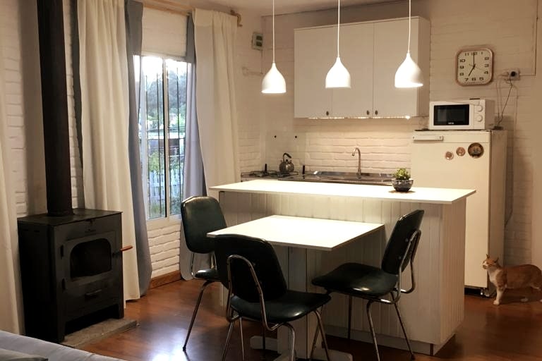Acogedora cabaña en el bosque de Punta Ballena. Ideal para desconectar y descansar en un entorno natural y de mucha paz. A pasos del Arboretum Lussich, ideal para caminatas, paseos y disfrutar de un café con una deliciosa torta de La Checa. A minutos de las playas Solanas, Tío Tom, Las Grutas, Chihuahua. Contamos con set de reposeras y sombrilla con protección uv. En invierno te esperamos con el fueguito prendido. La casa está completamente equipada para que se sientan cómoda/os como en casa.
