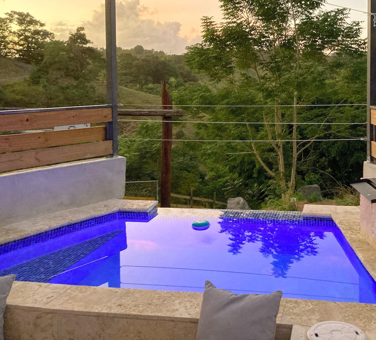 Welcome to Albor!! Incredible private property for couples in the mountains of the town of Aguada, with spectacular views form the top of the mountain to the green wood and the ocean. In this Tiny/container house concept you will enjoy all our amenities such as our private pool, fire pit, bbq grill, outdoor breakfast, and dining area, Wi-Fi, Tv, 1.5 bathrooms, a fully equipped kitchen and a master bedroom with a direct access to the balcony where you will have the most beautiful sunsets.