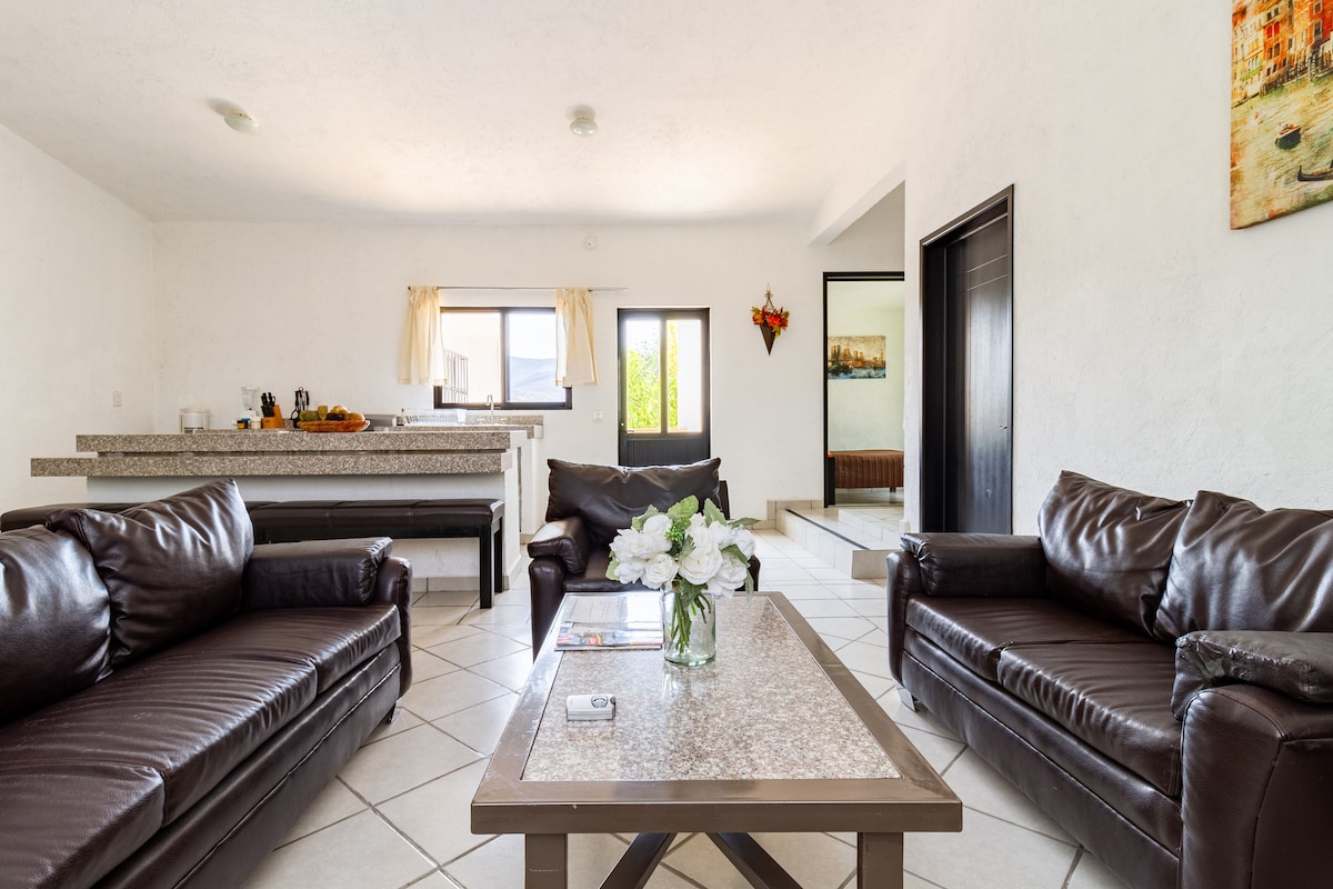 El mejor lugar para quedarte en el pueblo mágico de Bernal es nuestro hermoso departamento de dos recámaras. Cuenta con un diseño minimalista que mezcla los materiales y la flora caracteristicos de la región para lograr un ambiente agradable que siempre estará enmarcado por la Peña de Bernal, ya que fue orientado para tener las mejores vistas del monolito. Nos encontramos en el centro de la ciudad, es perfecto para moverse caminando. Contamos con vigilancia a todo momento y la mejor terraza.
