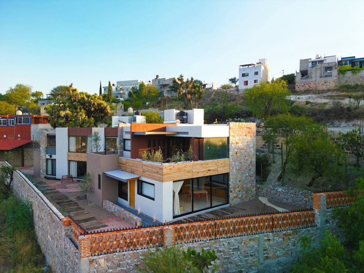 El mejor lugar para quedarte en el pueblo mágico de Bernal es nuestro hermoso departamento de dos recámaras. Cuenta con un diseño minimalista que mezcla los materiales y la flora caracteristicos de la región para lograr un ambiente agradable que siempre estará enmarcado por la Peña de Bernal, ya que fue orientado para tener las mejores vistas del monolito. Nos encontramos en el centro de la ciudad, es perfecto para moverse caminando. Contamos con vigilancia a todo momento y la mejor terraza.