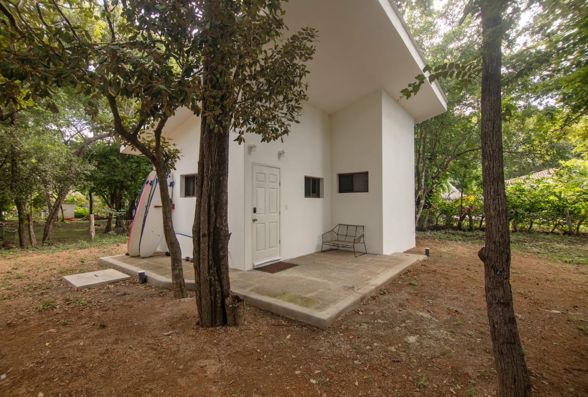 Directly beachfront, this two bedroom house can sleep 6 with a beautiful kitchen, bathroom, indoor and outdoor showers, and plenty of places to relax. Walk five min and your on one of the most beautiful surfing beach in the Americas. I've spent twenty years finding surfing beaches,and this is where I stopped looking and started building. There are several chill spots on the property. Comfy rocking chairs, hammocks and tables to work on. Exceptional staff.