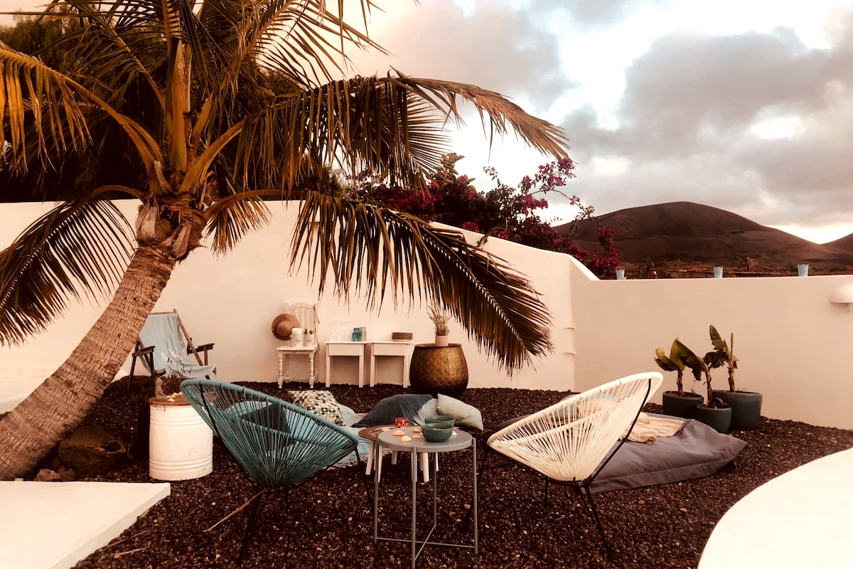 Stay in one of two charming 80 sq m modern hippie apartments with a unique view of Timanfaya National Park and its volcanoes. The apartment features a fully equipped kitchen, a living room with panoramic sliding doors and a sofa bed, HDTV, fiber optic internet, and a bedroom with a Canarian-style en-suite bathroom. Relax on your private terrace, dip your toes in the César Manrique saltwater pool, enjoy the endless vistas, and marvel at magical sunsets. 🩵