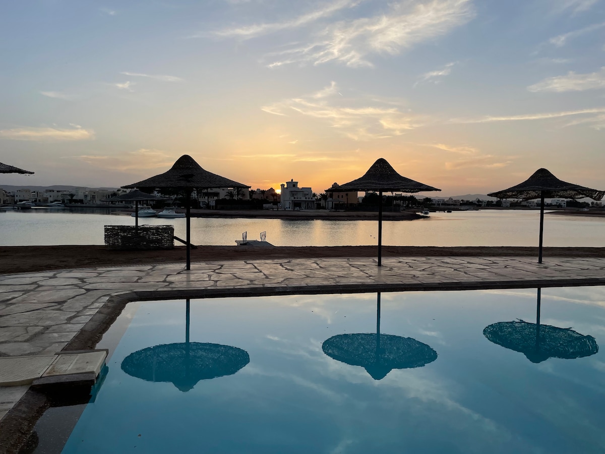 艺术1卧室公寓/免费游泳池和泻湖通道@ElGouna