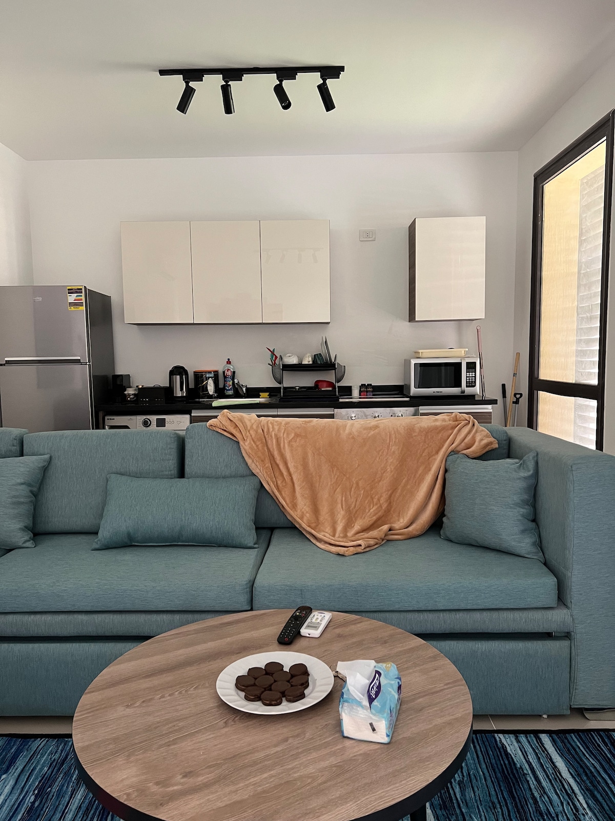Newly furnished apartment overlooking an amazing view of the pool and the lagoon at Tawila. 1 bedroom, 2 bathrooms and a spacious living room with a comfortable easy use sofabed. Fully equipped kitchen, washing machine, iron. 65" TV with PlayStation, Netflix, OSN, Watchit, Shahid, BEIN sports and cable channels. The flat is suitable for couples, group of friends or a family with children. All rooms are equipped with ACs. Free WIFI. Free parking House keeping is available upon request.