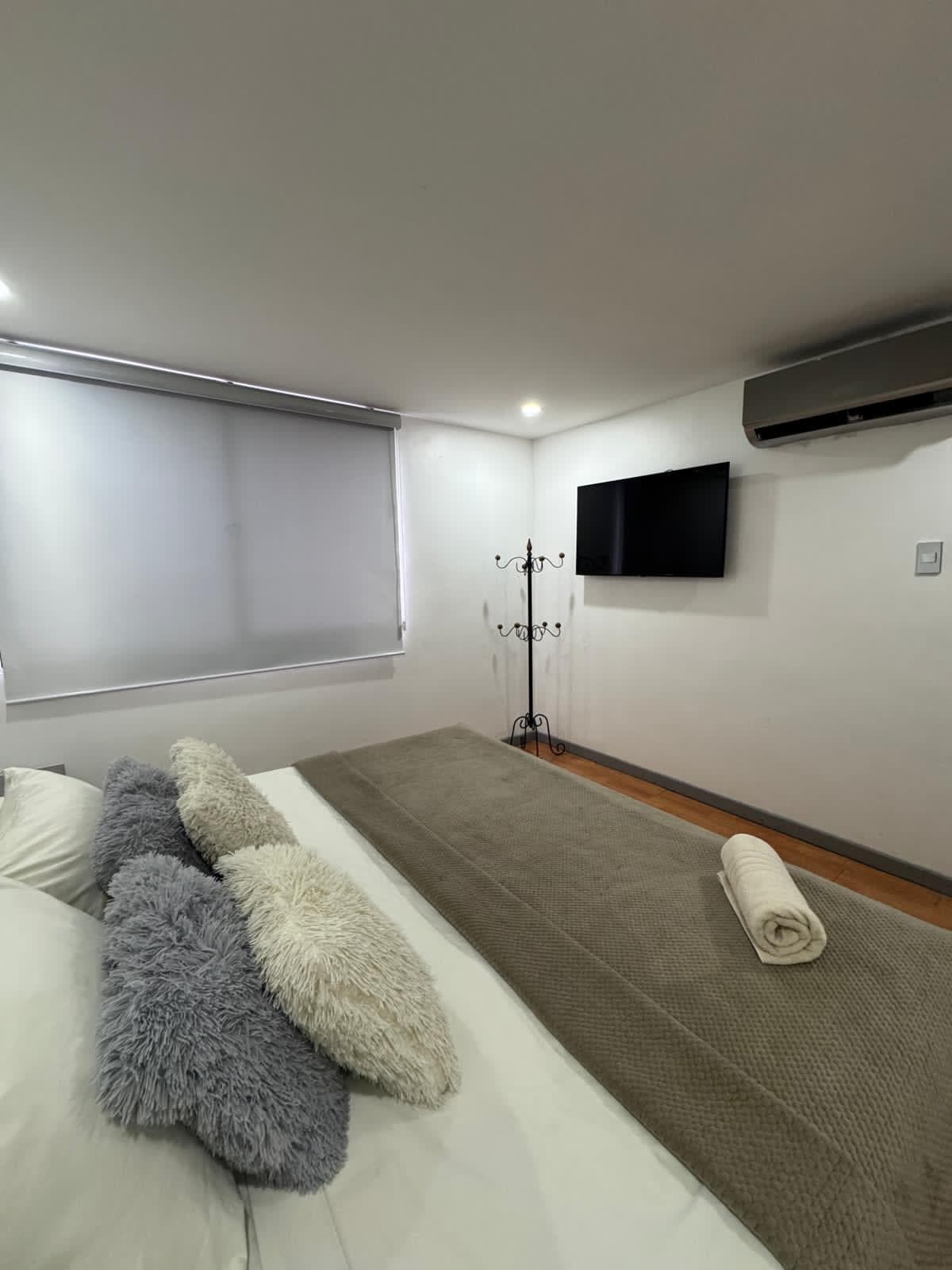 Un pequeño pero espacioso apartamento con todas las comodidades en Lomas del Sol. Cuenta con su tanque de agua en caso de fallas, lavadora, secadora, cocina completa, tv en la sala y en el cuarto, ademas de aire acondicionado en todo el espacio