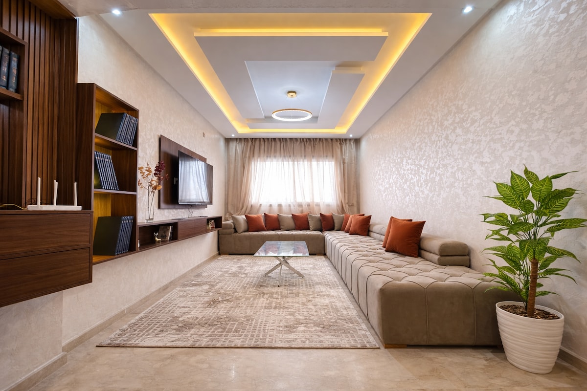 Welcome to our modern, cozy apartment where comfort meets style. Enjoy a bright living room with navy sofas, a sleek kitchen, and a dining area for six. The space includes fast WiFi, a flat-screen TV (Bein sports, IPTV service), and elegant décor. Large windows fill it with natural light and calm energy. Just 3 mins to the train station, 2 mins to Carrefour and 5min driving to the beach & City Center… ( not allowed for unmarried couples) Perfect for relaxing short or long stays.