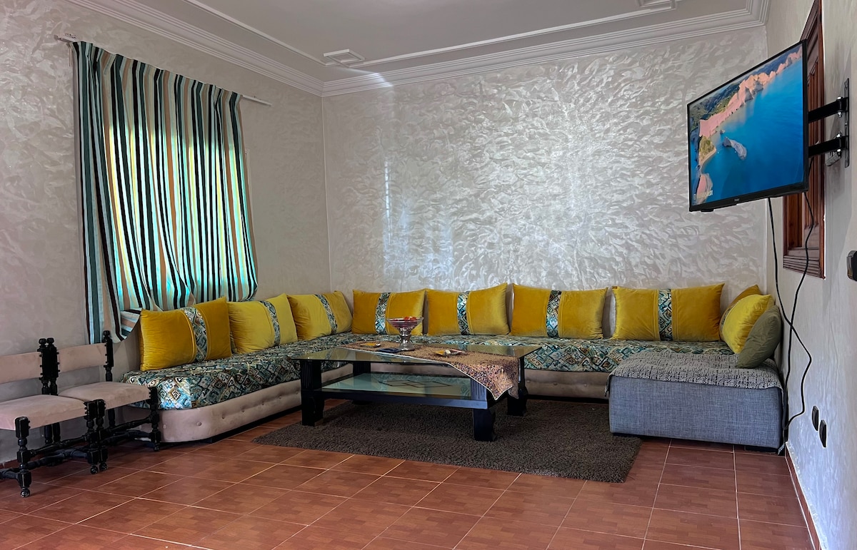 Bonjour, En plein centre ville d’El jadida, et a 5 min à pied de la plage, je mets en location mon appartement de 90 m2 qui se compose de deux chambres, un salon, un séjour, une grande cuisine avec balcon, une salle de bain et un espace laverie, Ce logement familial est proche de tous les sites et commodités. Stationnement devant l’immeuble. Bienvenu :)