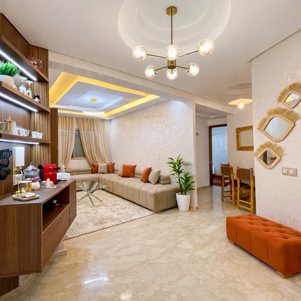 ✨ Bel appart 2 chambres à Hay El Matar, à 10 min de la plage. Salon spacieux, cuisine équipée, Wi-Fi rapide et parking. 🛏️ 2 Chambres confortables 🛋️ Salon avec TV 🍳 Cuisine bien équipée 🌐 Wi-Fi – télétravail OK 🅿️ Parking dispo 🚗 Aide : transport ou infos locales 📍 Proche restos, taxis, Marjane 🔑 Check-in simple 🧼 Draps & serviettes fournis ⚠️ Réservé aux familles ou voyageurs respectueux des règles locales.