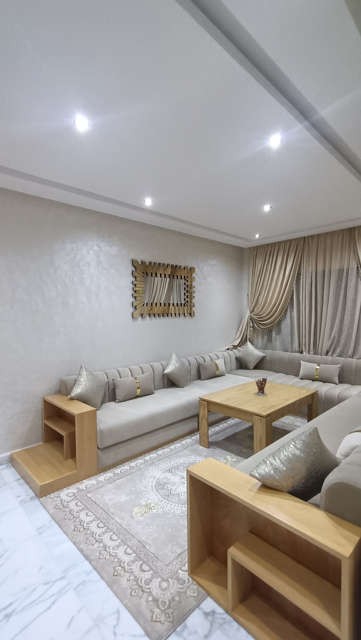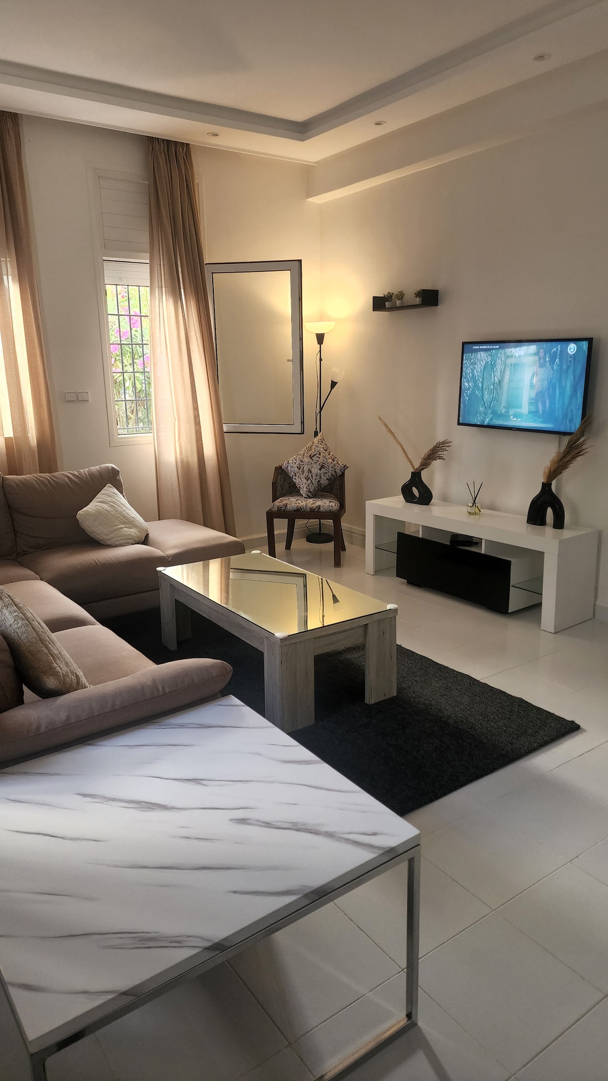Appartement Élégant avec Terrasse Bienvenue dans ce magnifique appartement alliant modernité et confort, idéalement conçu pour un séjour relaxant. Situé au rez-de-chaussée, ce logement lumineux et spacieux Il se trouve à seulement 5 minutes en voiture de la plage, le centre commercial Carrefour est à 3 minutes à pied Que vous soyez en couple, en famille ou entre amis, cet appartement vous garantit un séjour agréable. Pour les couples marocains, il est important de présenter un acte de mariage.