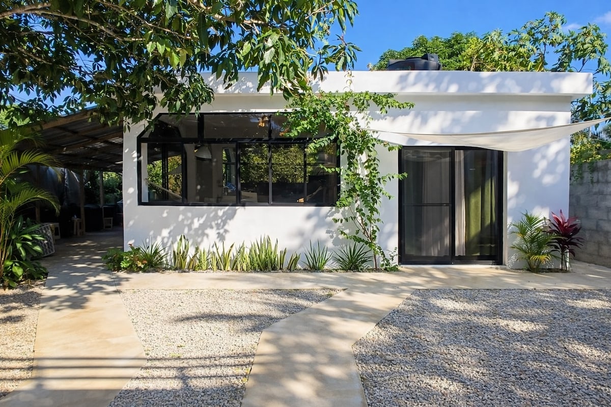 Enjoy our restful, brand new studio that features a stunning patio overlooking the jungle. Modern, fully outfitted kitchen features plenty of cabinet space and the sleek bathroom has a glass shower and wall bidet. A large closet makes extended stays easy. A four minute walk through forest gardens brings to calm, beautiful Playa Ballenas-hike, SUP, kayak, sail, snorkel, sip, this beach has it all. NOTE: This studio is part of a larger home and has a private entrance one flight of stairs down.