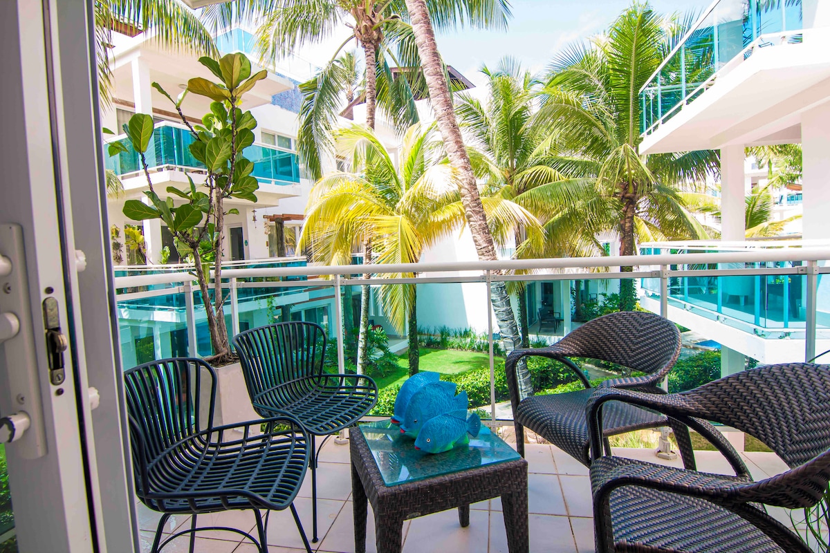 You and your guests will be close to everything when you stay at this exclusive, centrally-located beachfront condo in Las Terrenas! This prestigious condo is one of few of Terrazas del Atlántico, a very peaceful area in front of the beach of Las Ballenas with excellent amenities like pool, hot tub and much more to enjoy!