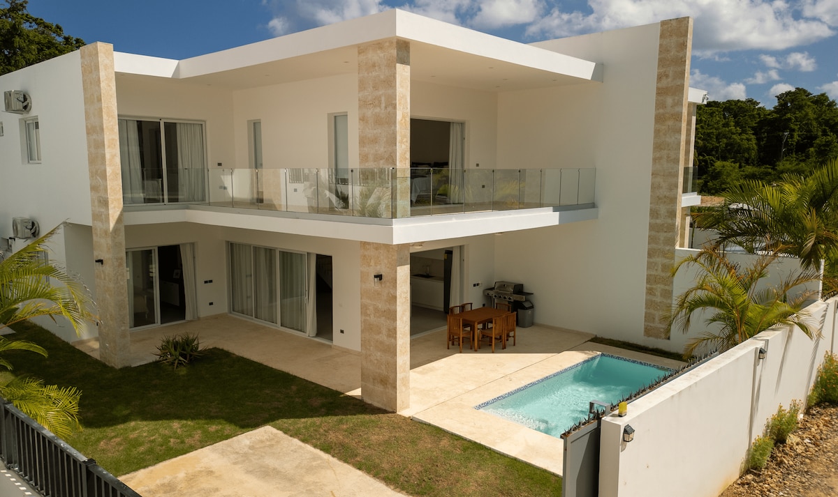 This Villa is in a peaceful residence that can accommodate up to 8 guests. Short walk to the beach (200m), town (300m) where you find shops, restaurants & supermarkets. The villa is newly built, with modern kitchen and bathrooms, with tropical gardens and a private pool. Fiber high-speed internet connection. In the morning you can buy your fish fresh on the beach (5 min. walk) and put it at night on the BBQ. Also, typical Dominican chef for additional fee &several excursions possible.
