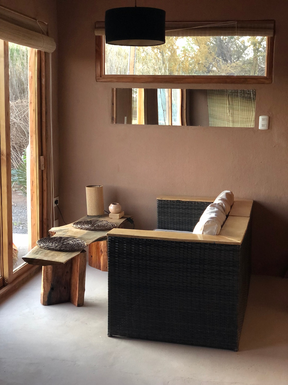 Cabaña privada alejada del centro turistico, a 3,5 kms Estilo autóctono de San Pedro de Atacama (Adobe), donde la vista descansa en lo verde y tranquilidad del oasis. Private Hütte 3,5 km entfernt vom touristischen Zentrum. Im einheimischen Baustil der San Pedro Kultur ( in Adobe), im Grünen und der Ruhe der Oase. Private cabin away from the tourist center, 3.5 kms Native style of San Pedro de Atacama (Adobe), where the view rests in the green and tranquility of the oasis. 100% sun energy