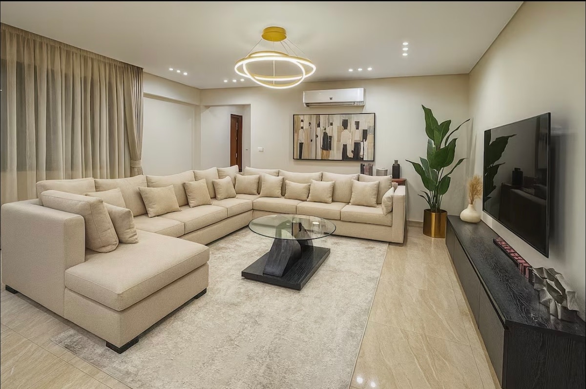 Stay in a modern apartment just 8 mins from Cairo Airport, with stunning runway views—watch planes take off and land right from your window! Located in the upscale Rich House compound, enjoy the convenience of having Spinneys supermarket in the same building. Steps away from Taha Hussein Street, packed with food shops and services, and facing the Saudi German Hospital. Perfect for travelers, this apartment offers unbeatable proximity, comfort, and style in a prime location! Close to ring road